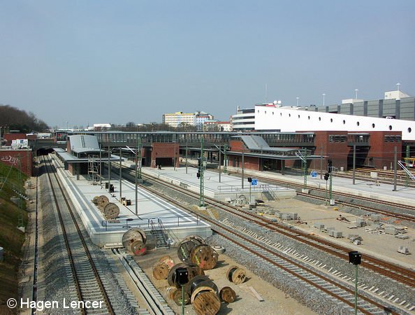 Aus den ehemals drei Bahnsteigen sind heute fünf geworden (6. April 2005).